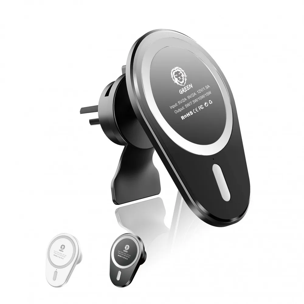 Green Wireless Magnetic Car Charger / Mount 15W ( Air Vent + Stick-on-Holder )