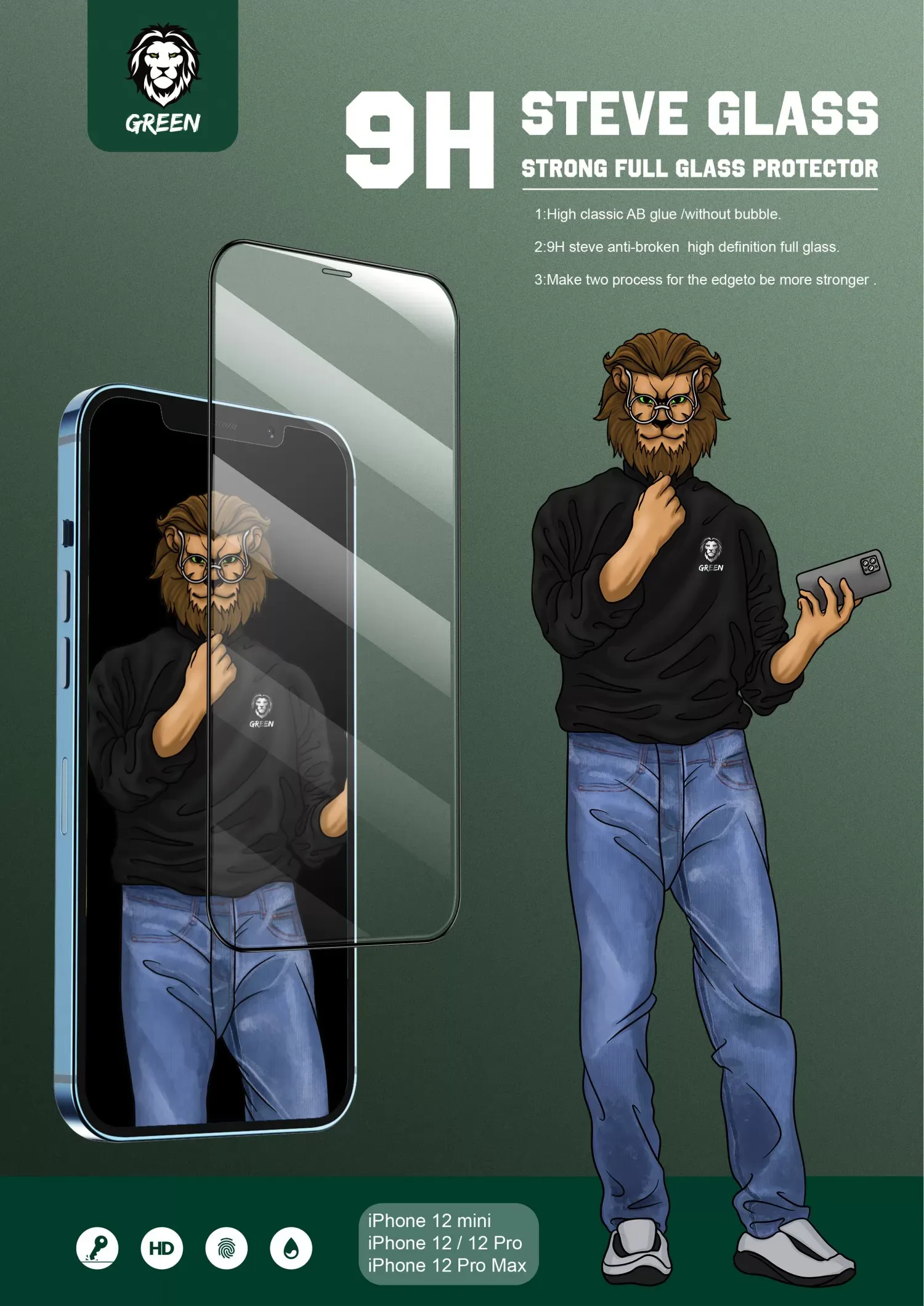 محافظ تمام صفحه Green 9H Steve Glass Strong برای iPhone 12 / 12 Pro (6.1 اینچ) – Clea – برند گرین لاین Green lion