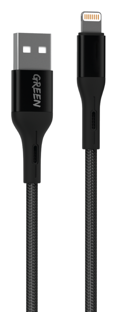 کابل لایتنینگ بافته 1.2m 2A – مشکی – برند گرین لاین Green lion