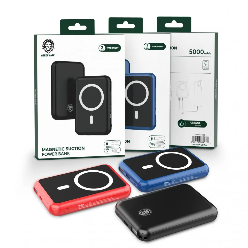 Green Magnetic Suction Power Bank 5000mAh
