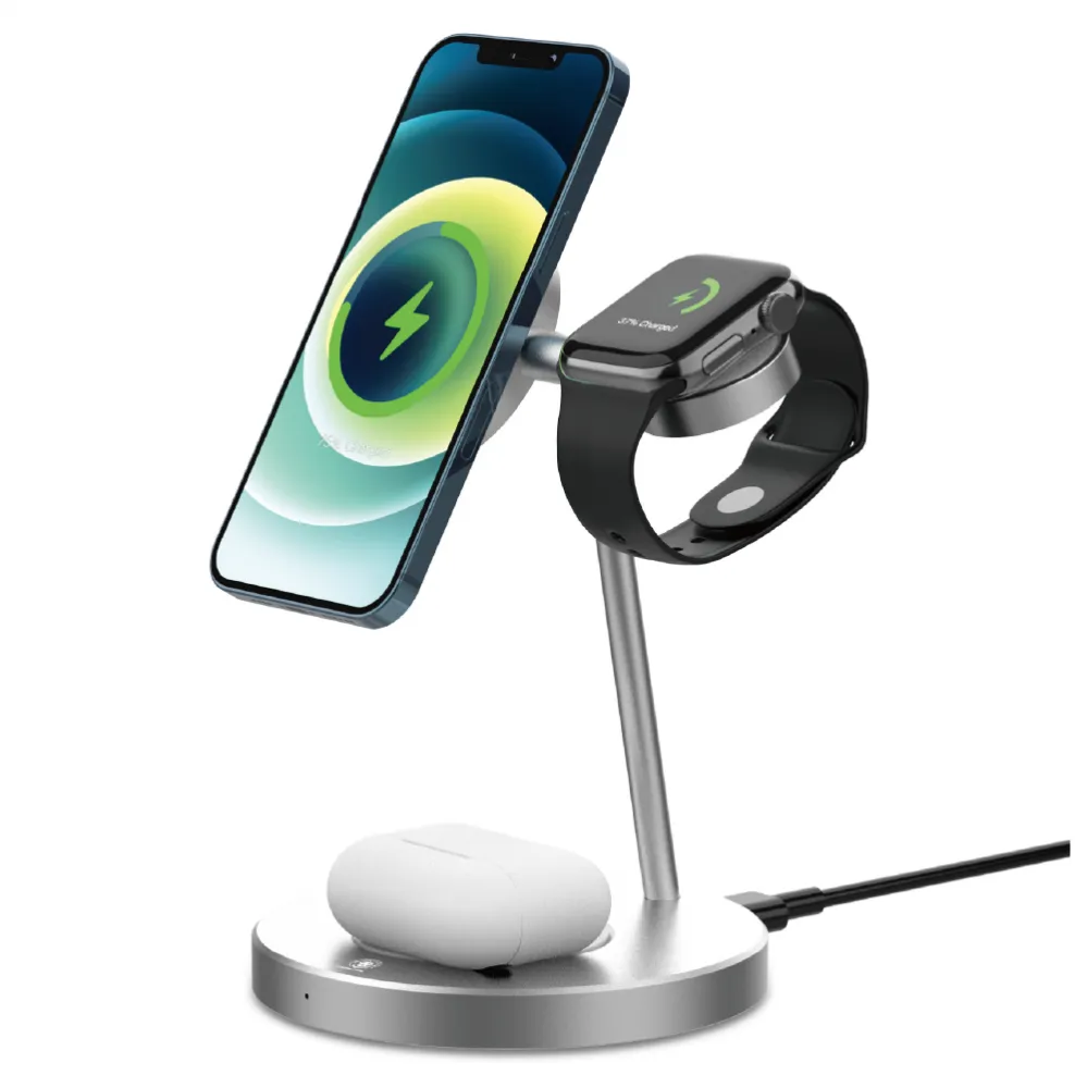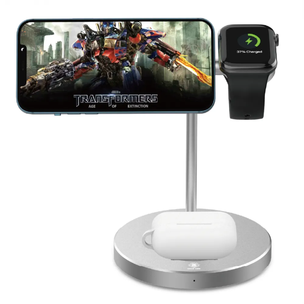 Green 3 in 1 Magnetic Fast Wireless Charger 15W