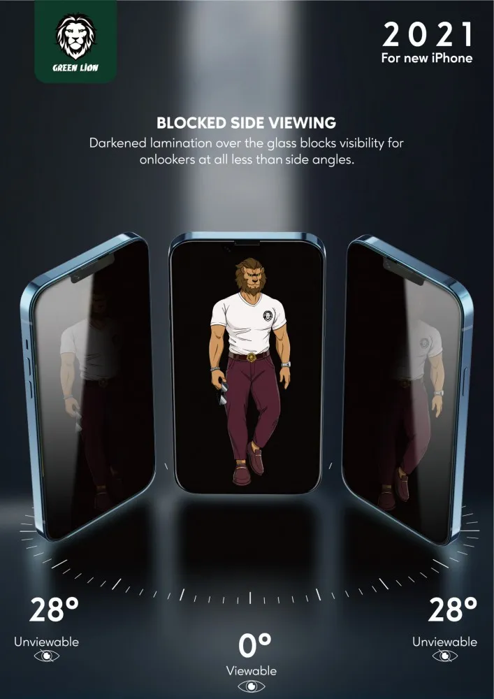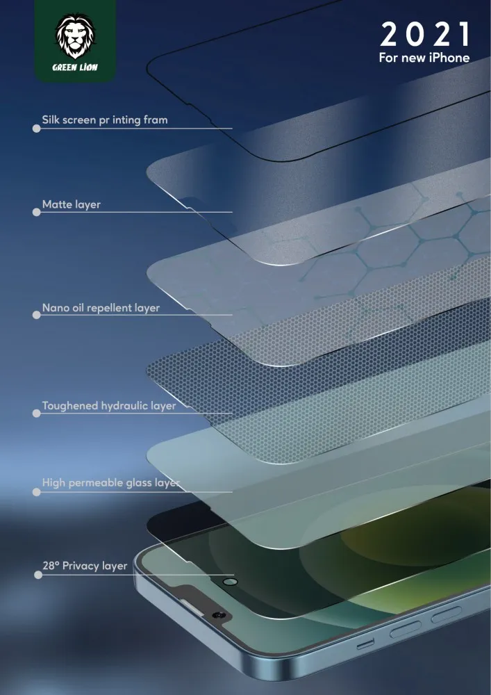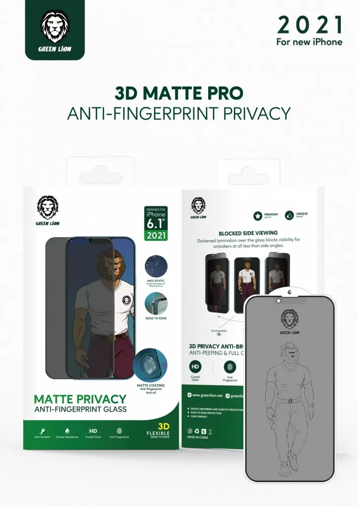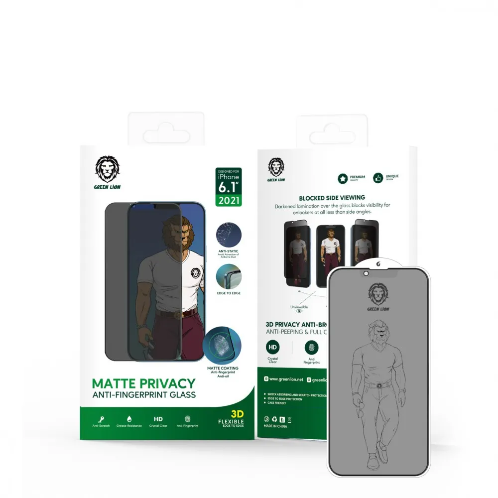Green 3D AG/Matte Privacy Glass Screen Protector for iPhone 13 / 13 Pro – Black
