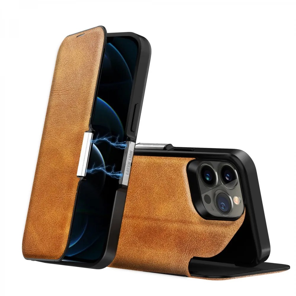 کیف پول چرمی PU برای iPhone 13 Pro (6.1 اینچ) – قهوه ای – برند گرین لاین Green lion