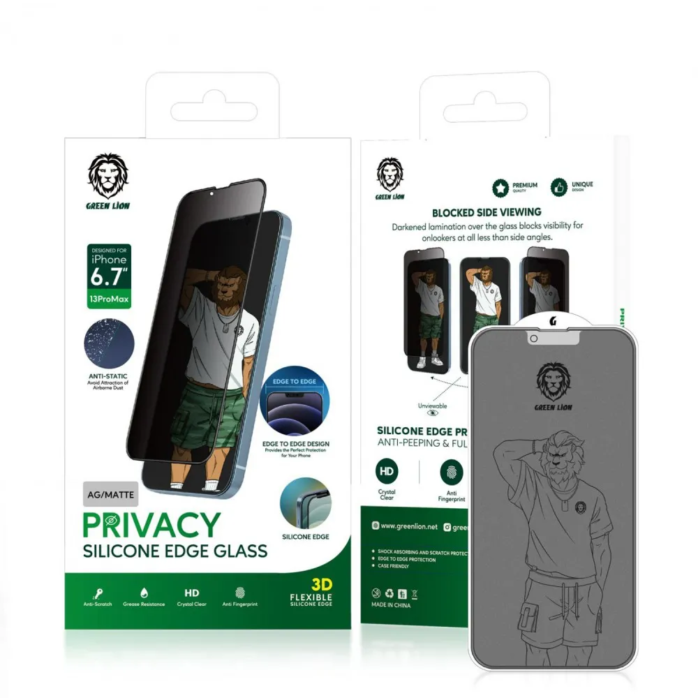 Green 3D Silicone AG/Matte Privacy Glass Screen Protector for iPhone 13 Pro Max – Bl