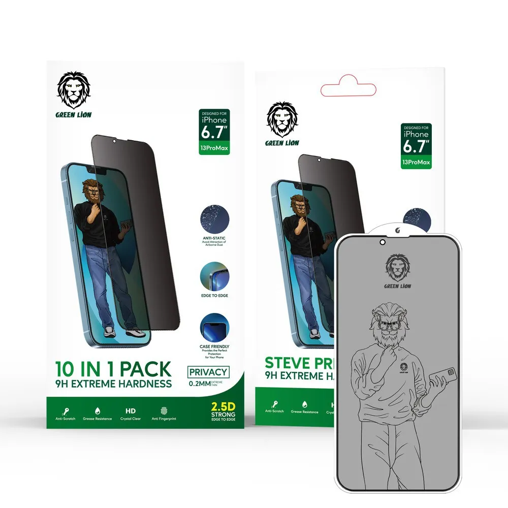 Green 10 in 1 Pack 2.5D 9H Steve Glass Privacy 0.2mm for iPhone 13 / 13 Pro ( 6.1" )