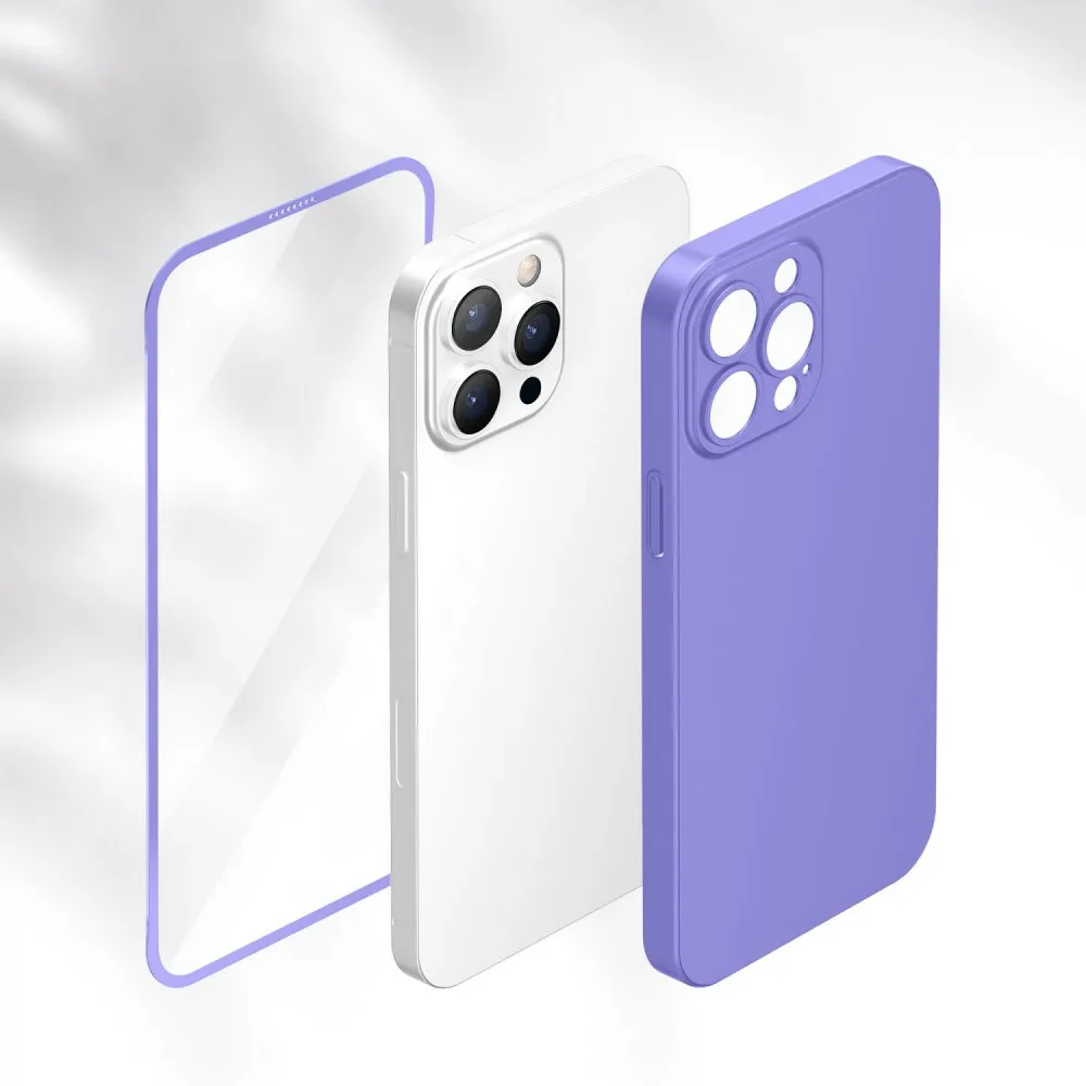 Green 360 Carsaca Plus Case with Normal HD Glass for iPhone 13 Pro