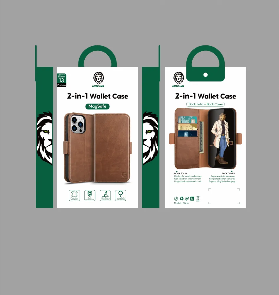 کیف کیف چرمی Green 2 in 1 Magsafe برای iPhone 13 Pro (6.1 اینچ) – قهوه ای – برند گرین لاین Green lion