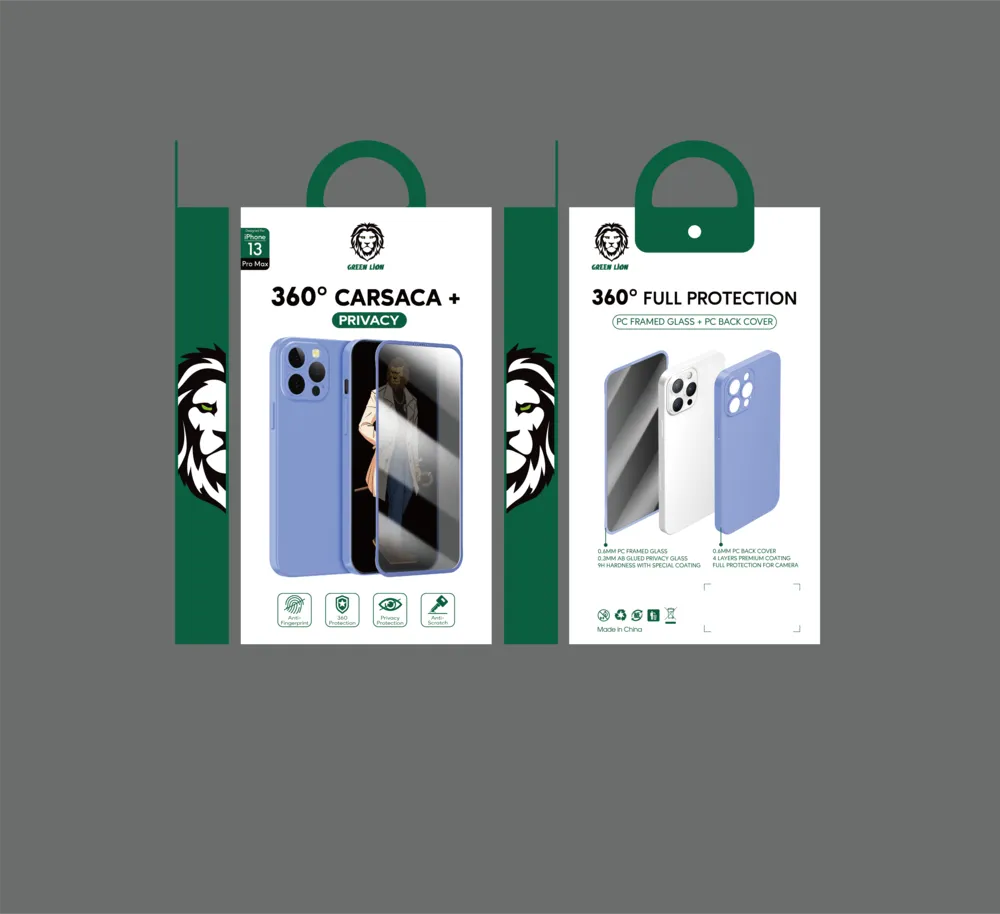 Green 360 Carsaca Plus Case with Privacy Glass for iPhone 13 Pro Max – Light Blue