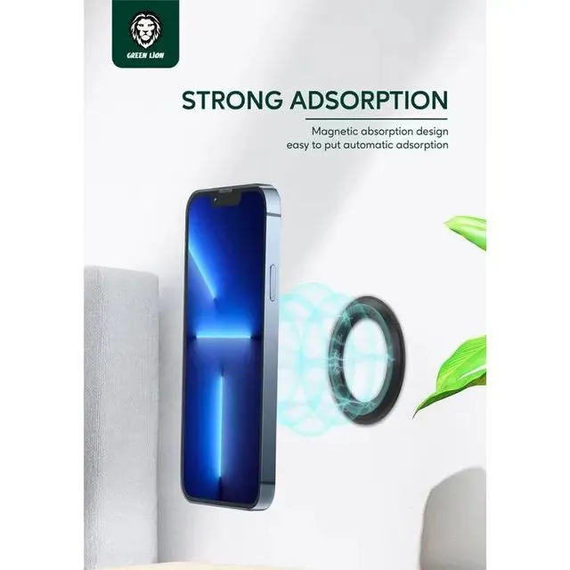 Green Lion Magnetic Holder Sticker یک هولدر مغناطیسی باریک و چسب‌دار است که امکان نصب در سطوح مختلف مانند شیشه، کاشی، چوب و دیوار را فراهم می‌کند. این هولدر گرین لاین با طراحی نرم و مقاوم، لمس دل‌پذیر و پایداری خوبی ارائه می‌دهد. آهن‌ربای قدرتمند با قابلیت جذب آسان گوشی، نگه‌داشتن قابل اطمینانی را فراهم می‌کند بدون اینکه خش یا آسیبی به گوشی وارد شود. نصب سریع و بدون زحمت جزء ویژگی‌های برجسته این نگهدارنده محسوب می‌شود.