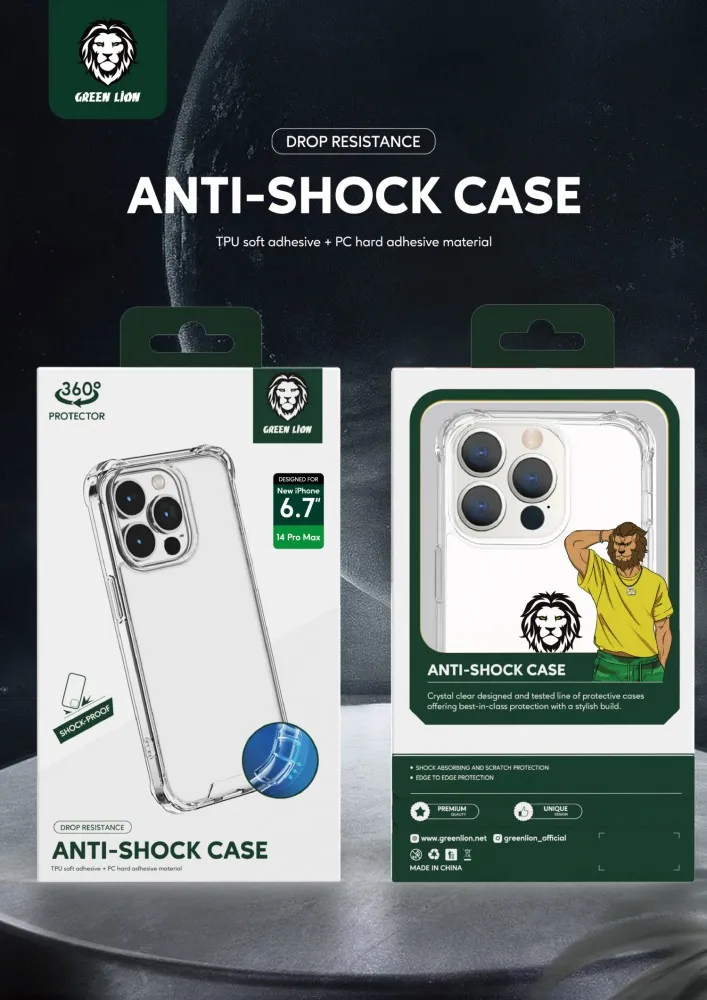 Green Rocky Series 360° Anti-Shock Case for iPhone 14 Pro Max ( 6.7" ) – Clear