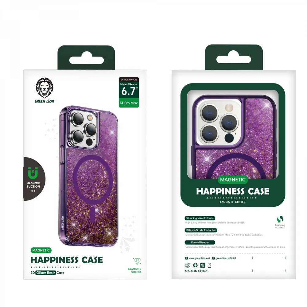 Green Lion Magnetic Happiness 3D Glitter Resin Case for iPhone 14 Plus ( 6.7" ) – Sil