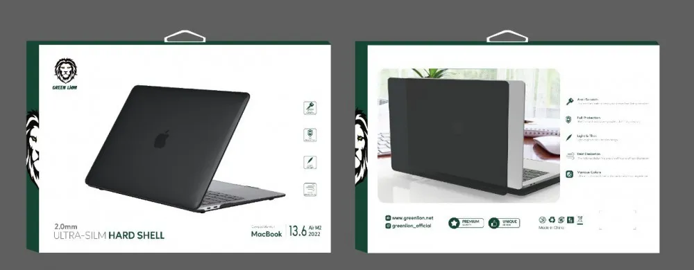 Green Lion Ultra-Slim Hard Shell Case 2.0mm for Macbook Air 13.6" 2022 M2 – Gray