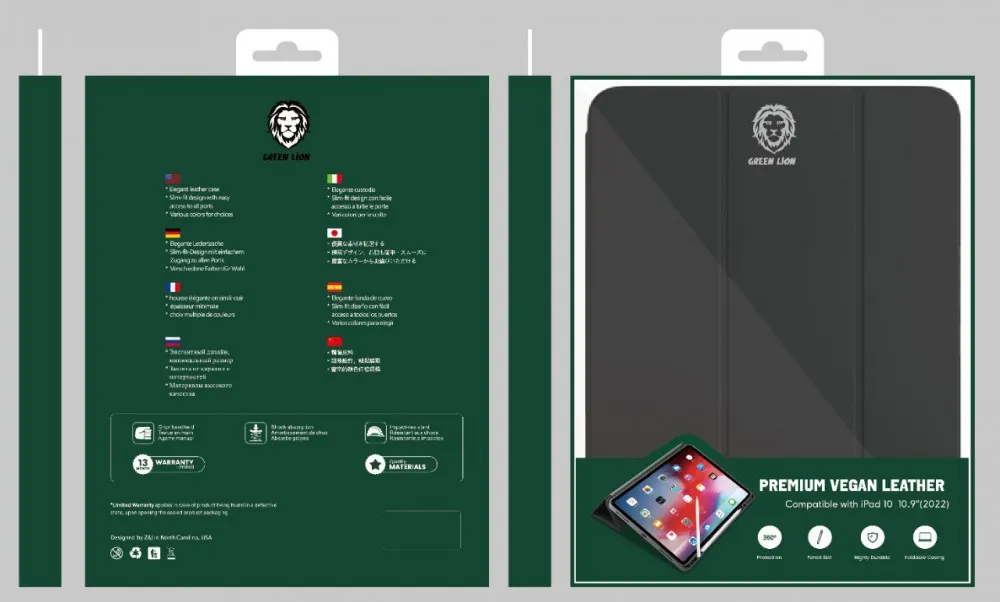 Green Lion Premium Vegan Leather Case with Pencil Slot for iPad10 10.9" 2022 – Black