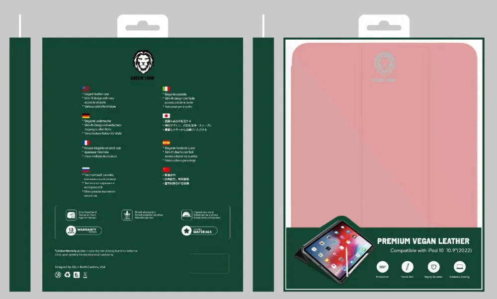 Green Lion Premium Vegan Leather Case with Pencil Slot for iPad10 10.9" 2022 – Pink