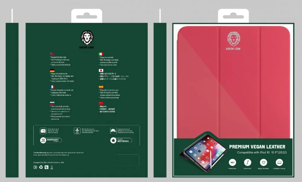 Green Lion Premium Vegan Leather Case with Pencil Slot for iPad10 10.9" 2022 – Red