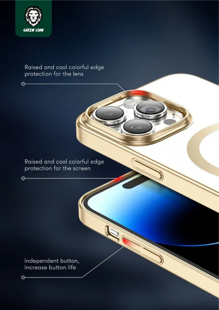 Green Lion Delgado Chrome Magsafe Case for iPhone 14 Pro ( 6.1" ) – Gold