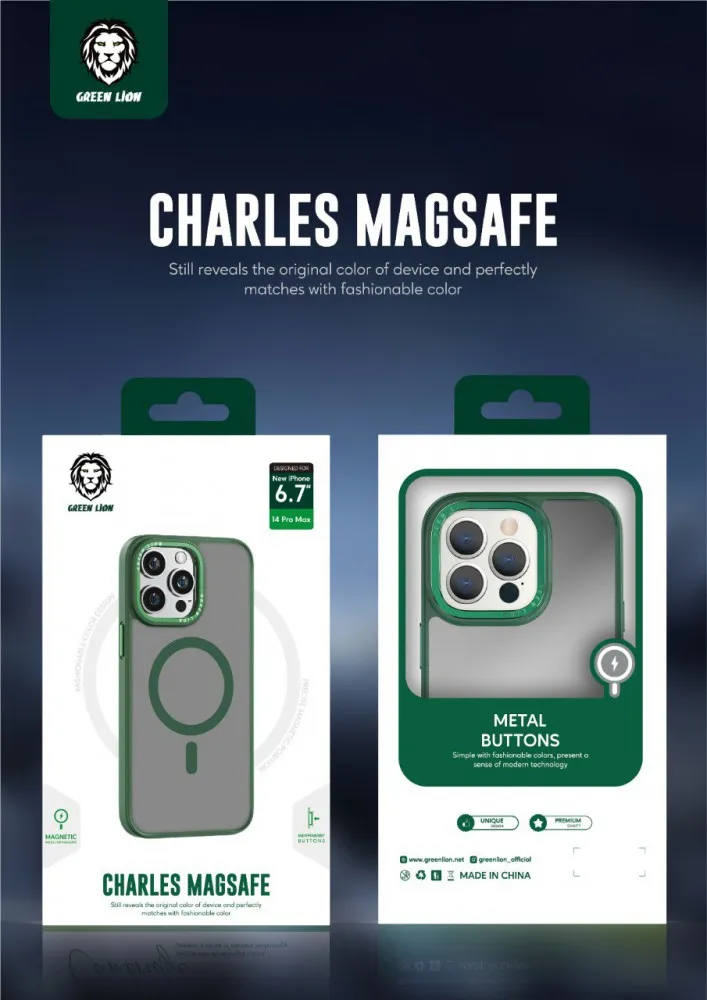 قاب چارلز مگ سیف برای آیفون 14 پرو مکس (6.7 اینچ) – آبی – برند گرین لاین Green lion