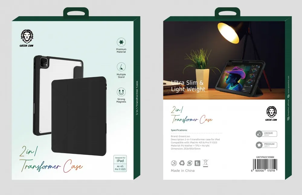 Green Lion 2 in 1 Transformer Case for iPad Air 4/5 & Pro 11 – Black