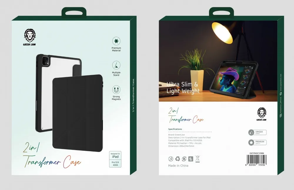 Green Lion 2 in 1 Transformer Case for iPad Pro 12.9 4/5/6 – Black