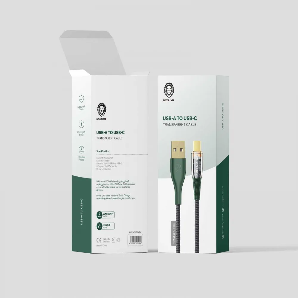 Green Lion Braided USB-A to Type-C Transparent Cable 1M