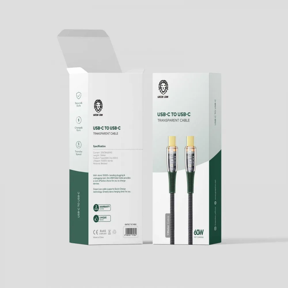 Green Lion Braided USB-C to Type-C Transparent Cable 1M PD 60W