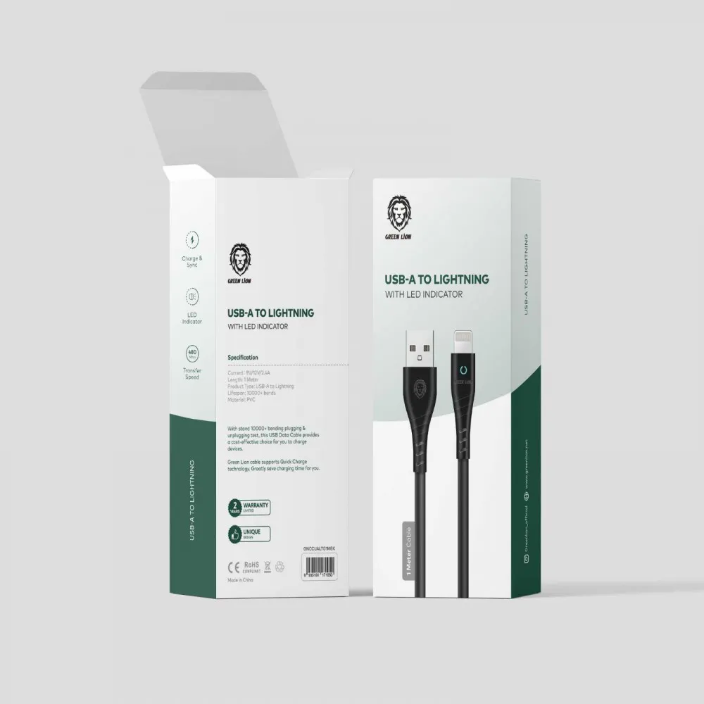 کابل USB-A به Lightning با نشانگر LED گرین لاین مدل GNCCUALTG1MBK طول 1 متر