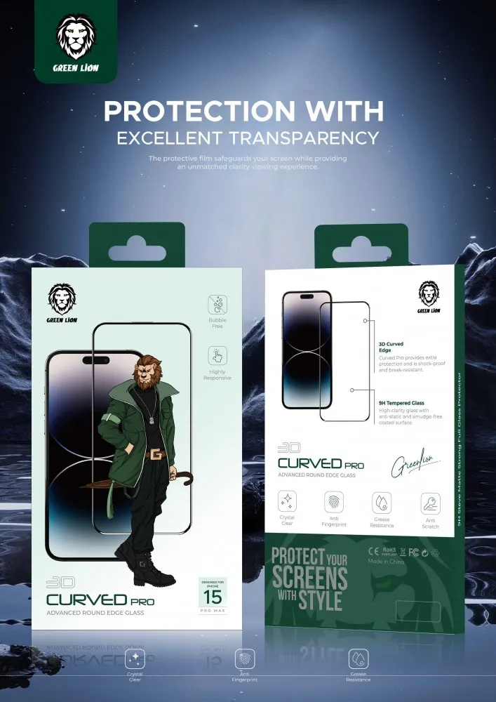 Green Lion 3D Curved Pro Screen Protector for iPhone 15 – Clear