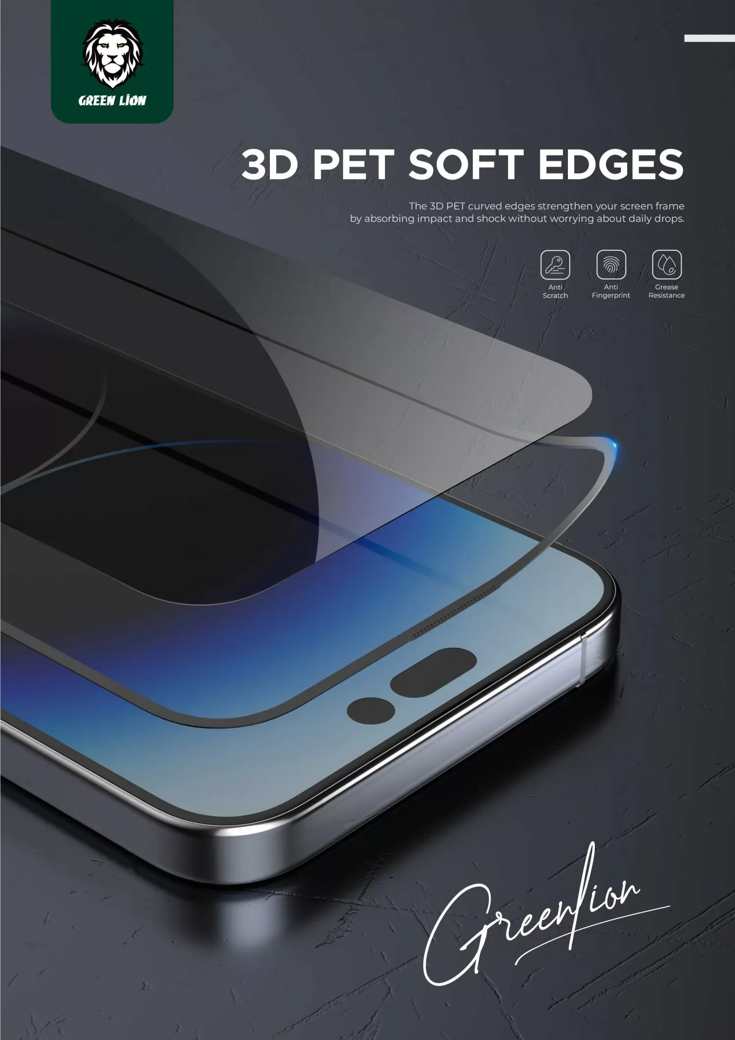 Green Lion 3D PET Pro Privacy Screen Protector for iPhone 15- Black