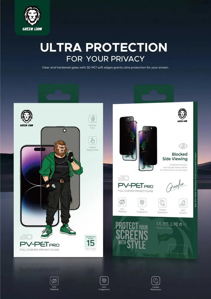 Green Lion 3D Pet Pro Privacy Screen Protector for iPhone 15 Plus – Black