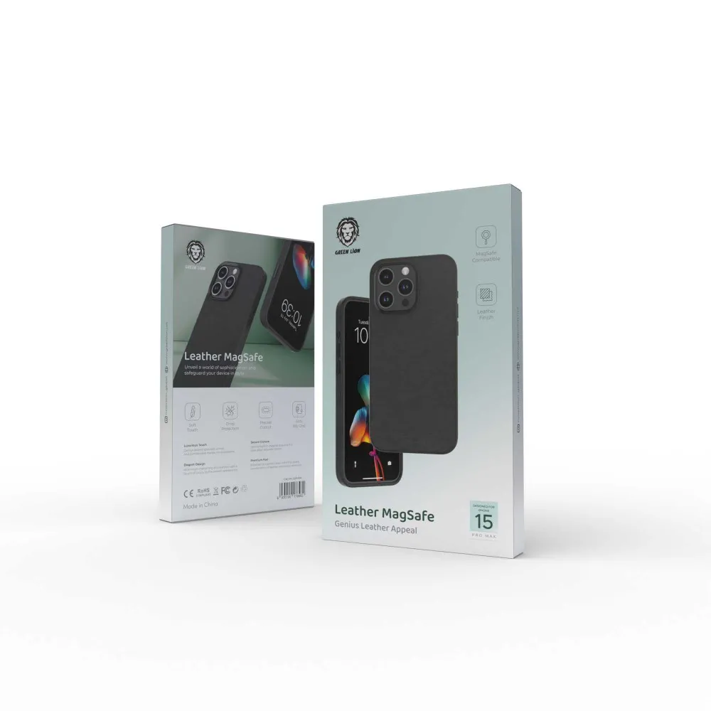Green Lion Leather Magsafe Case Elegant Design for iPhone 15Pro Max – Black