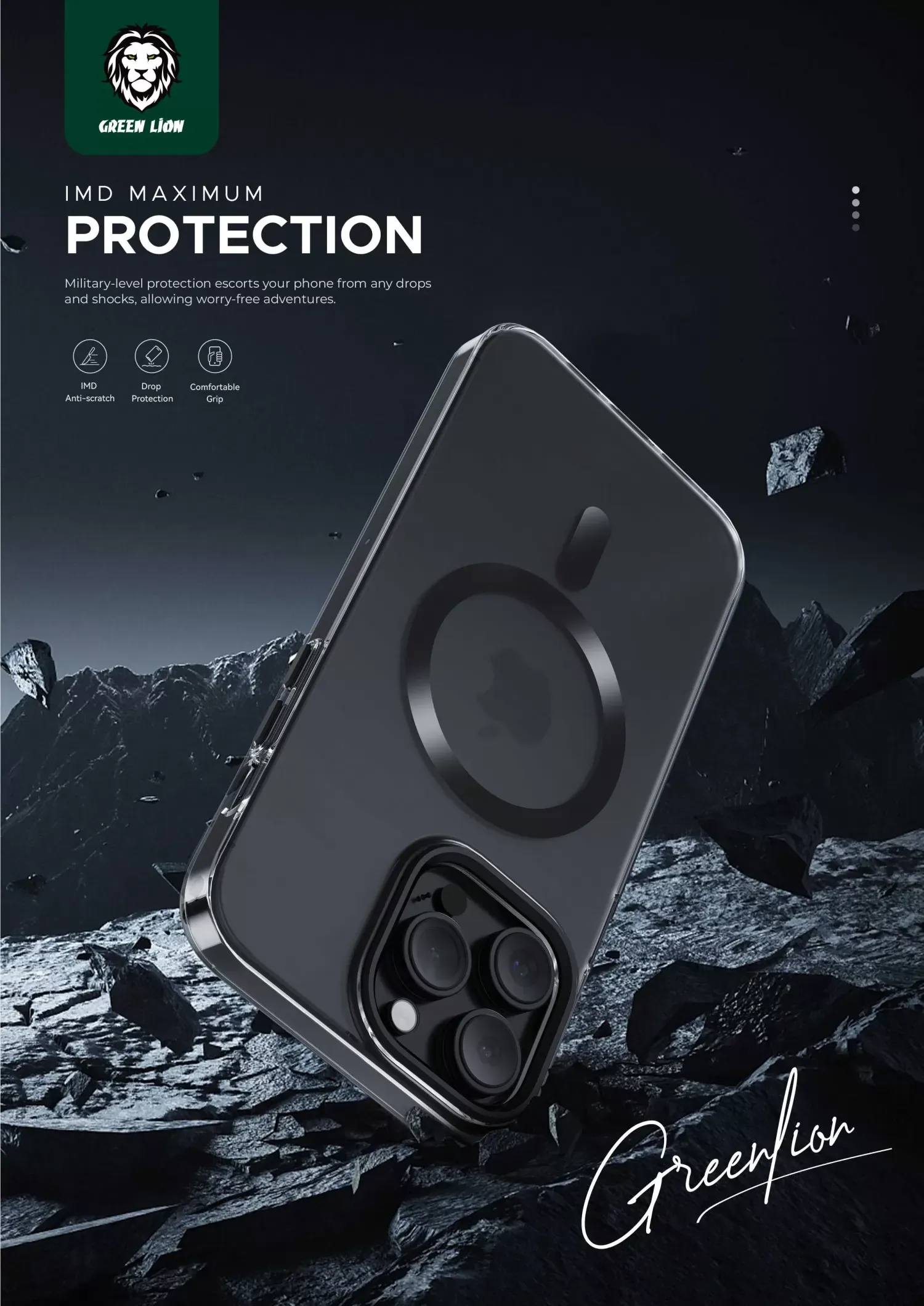 Green Lion Matte MagSafe(Metal Camera Ring and Metal Button)iP15Pro Max -Tita/Gold