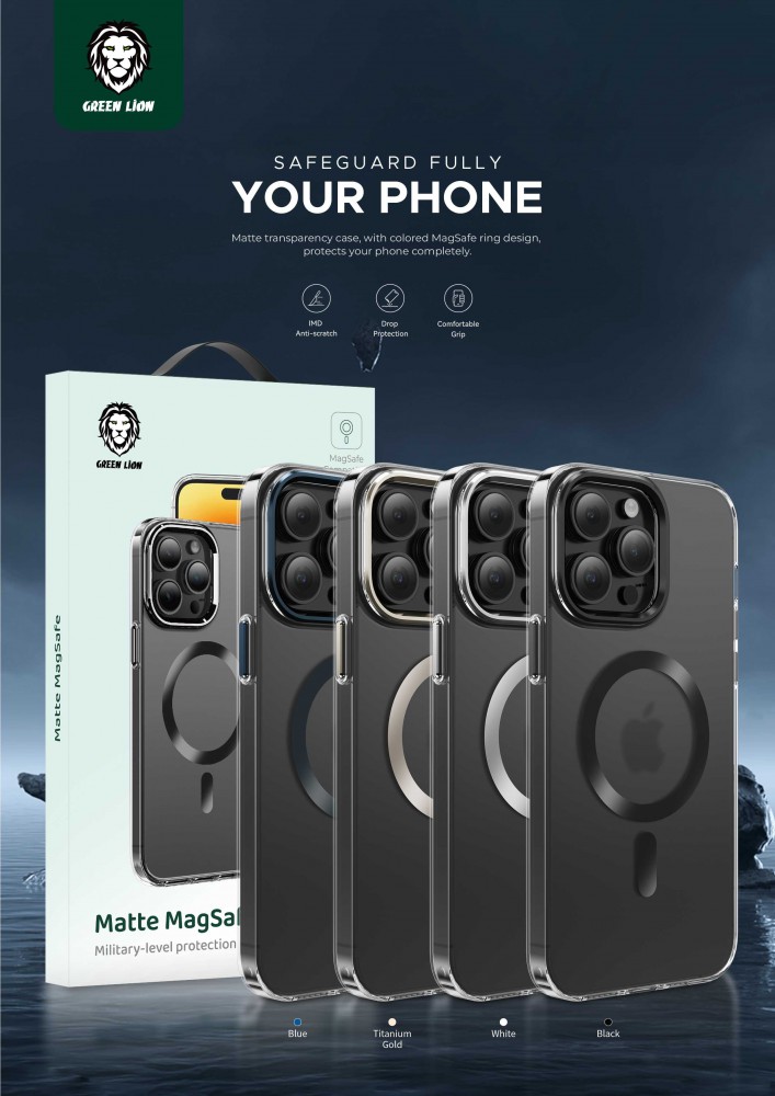 Green Lion Matte MagSafe(Metal Camera Ring and Metal Button)iP15Pro – Dark Blue