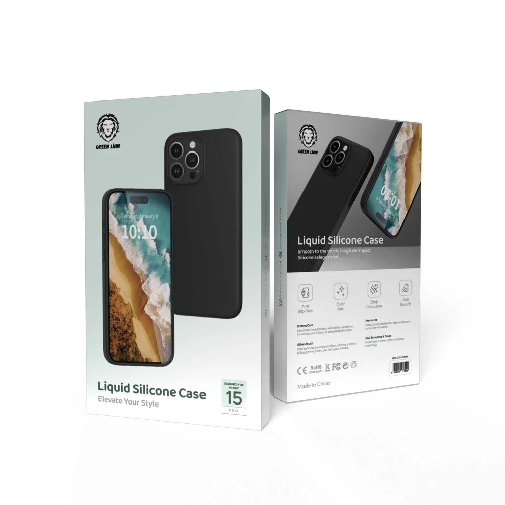 Green Lion Liquid Silicone Case for iPhone 15 Pro – Black