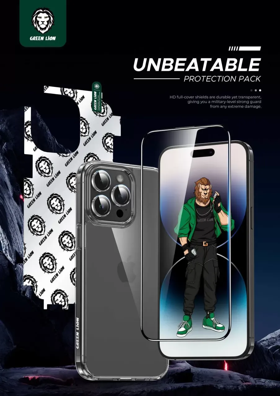 Green Lion 4 in 1 Defender Pack for iPhone 15 Pro Max – Titanium
