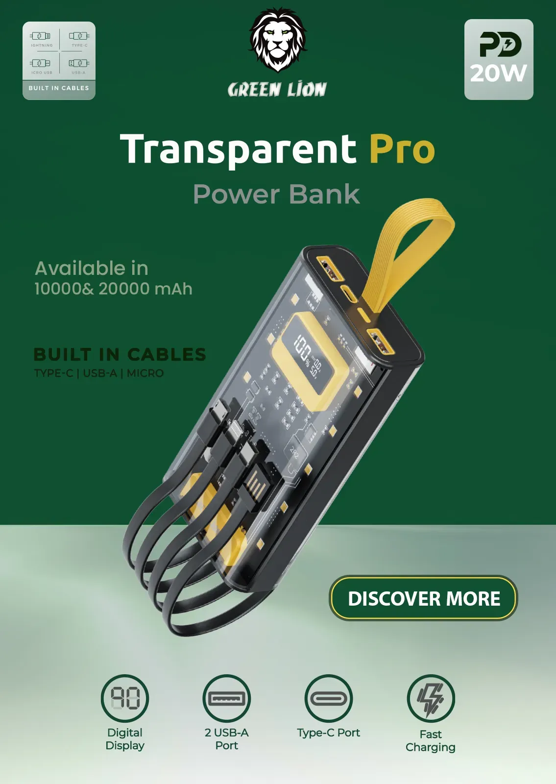 GREEN LION TRANSPARENT PRO 20000MAH POWER BANK