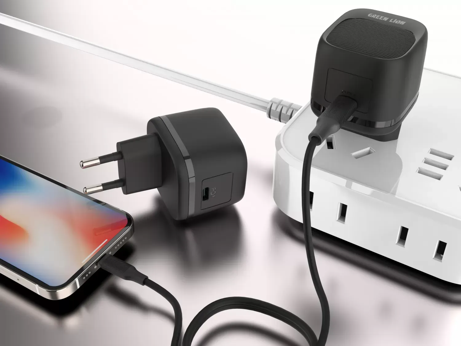 Green Lion PD 20W USB-C EU Wall Charger With USB-C To USB-C Cable – Black
