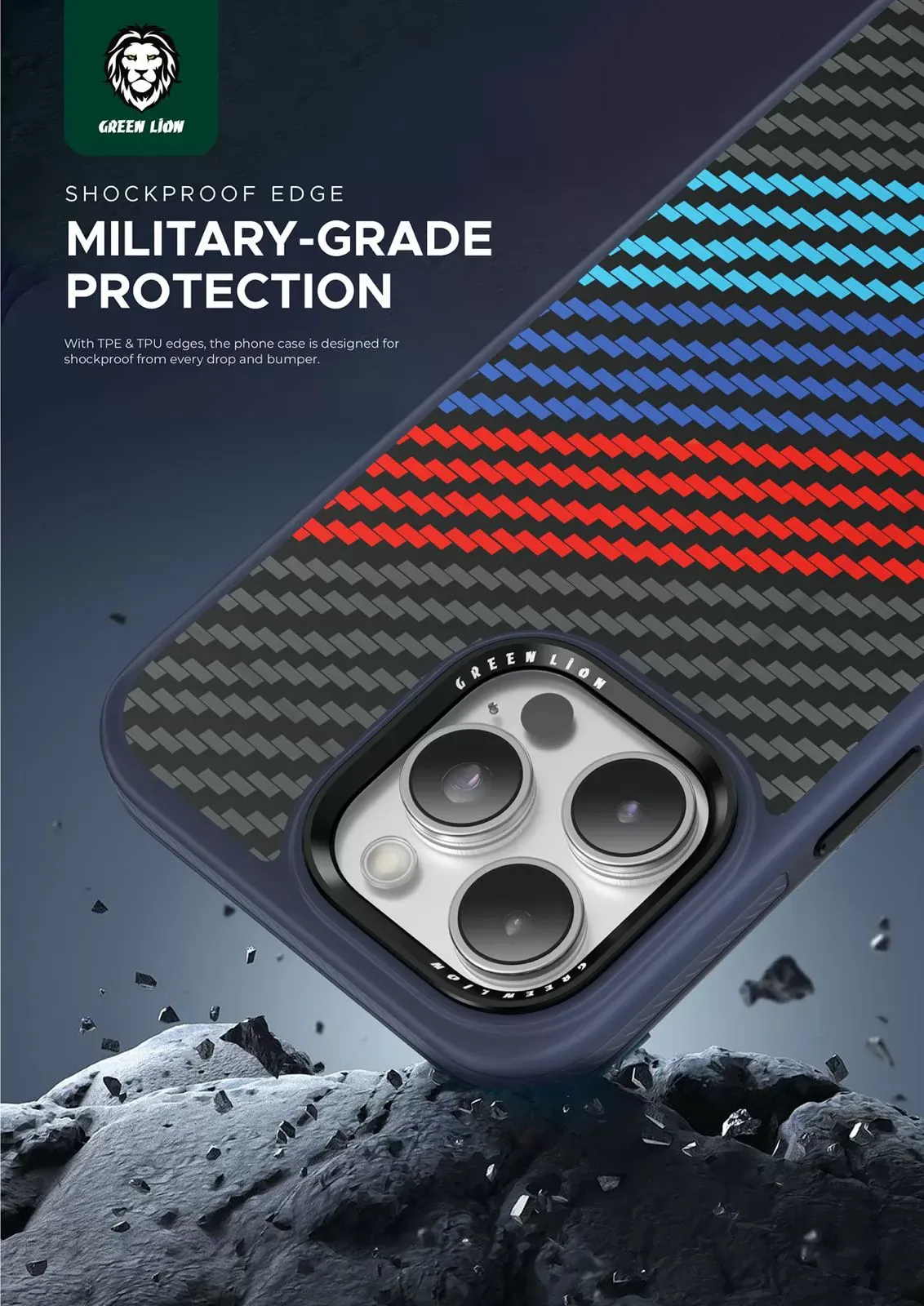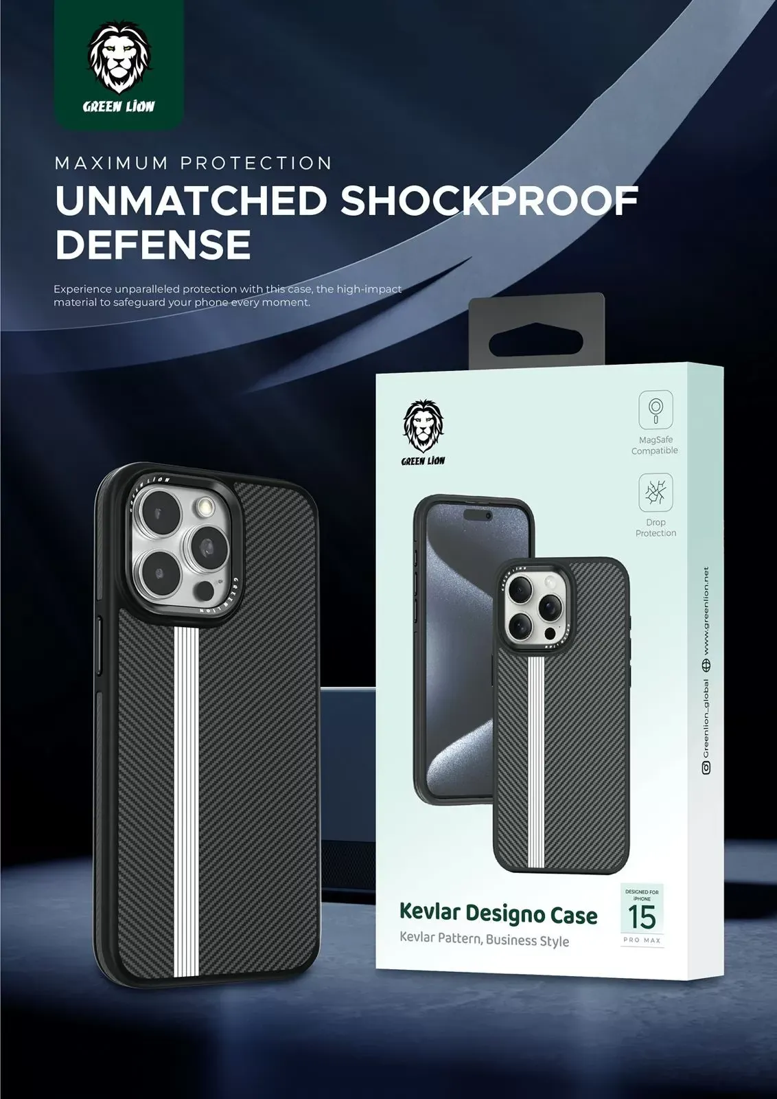 کیس Kevlar Designo برای آیفون 15 پرو مکس – مشکی – برند گرین لاین Green lion