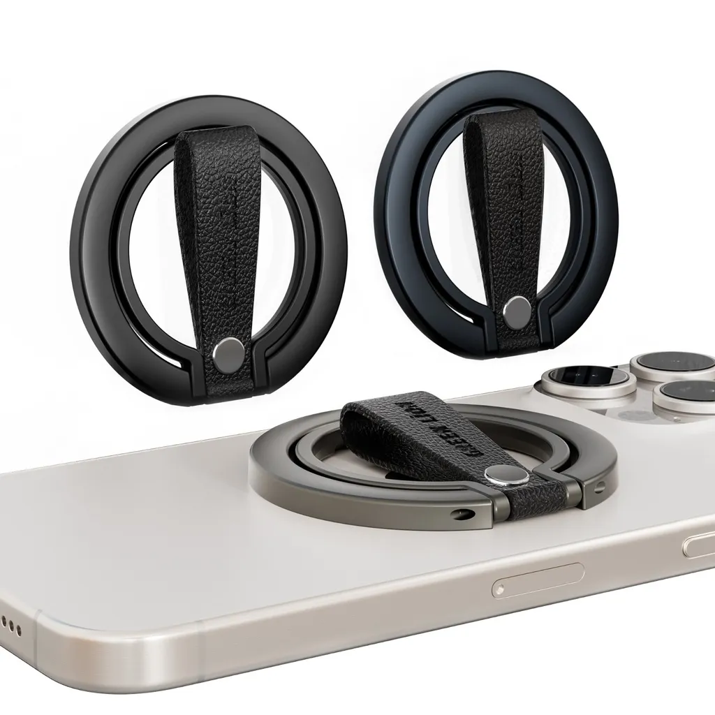 این یک هولدر گوشی با طراحی خاص و با قابلیت نصب آسان است. این محصول با استفاده از آهن‌رباهای قوی و دوطرفه، پایداری فوق‌العاده‌ای را ارائه می‌دهد که مانع از افتادن تلفن همراه می‌شود. قابلیت چرخش ۳۶۰ درجه و تنظیم زاویه دید تا ۱۸۰ درجه، امکان استفاده آسان برای مشاهده فیلم یا تماس تصویری را فراهم می‌آورد. بند چرمی کارآمد و کیفیت ساخت ظریف آن، حس لوکس بودن را القا می‌کند و استفاده طولانی‌مدت را نیز امکان‌پذیر می‌سازد.