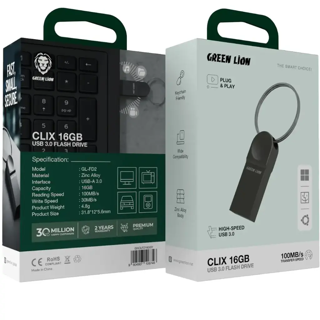 فلش مموری Green Lion CLIX 16GB USB 3.0 با سرعت بالا، گزینه ایده‌آلی برای ذخیره‌سازی و انتقال داده‌های سریع و قابل اعتماد است. این فلش مموری دارای بدنه آلیاژ روی است که هم زیبا و هم مقاوم است و از دوام بالایی برخوردار است. این دستگاه انتقال فایل‌ها را سریع و کارآمد انجام می‌دهد. با سرعت خواندن 100MB/s و سرعت نوشتن 30MB/s، این فلش مموری برای استفاده شخصی و تجاری بهترین انتخاب است. با ظرفیت 16GB، فضای زیادی برای ذخیره فایل‌ها، اسناد، تصاویر و موارد دیگر دارید. فلش مموری Green Lion CLIX با ویژگی Plug & Play به راحتی قابل استفاده است و با بیشتر دستگاه‌ها سازگار است.