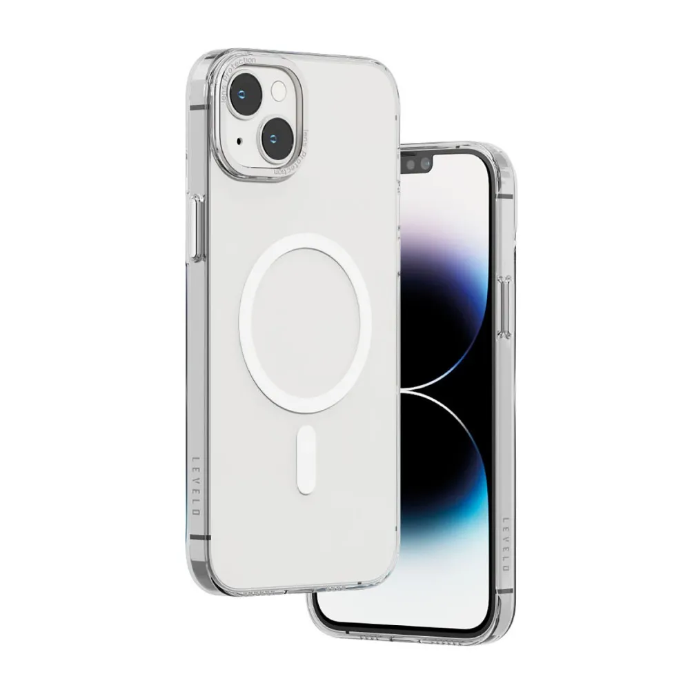 قاب پشتی شفاف MagSafe Sensa برای آیفون 14 – شفاف/نقره ای – برند لِوِلو Levelo