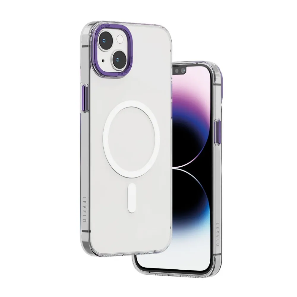 Levelo MagSafe Sensa Clear Back Case For iPhone 14 Plus – Clear/Purple