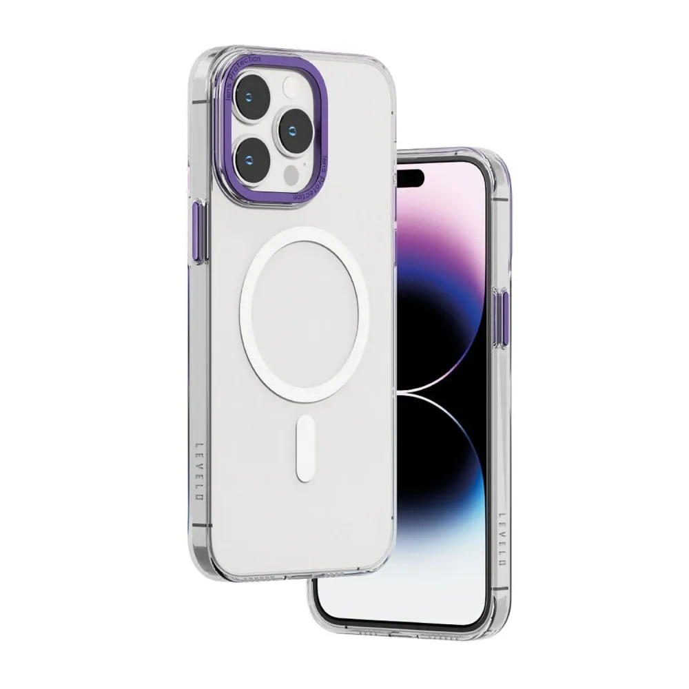 Levelo MagSafe Sensa Clear Back Case For iPhone 14 Pro Max – Clear/Purple
