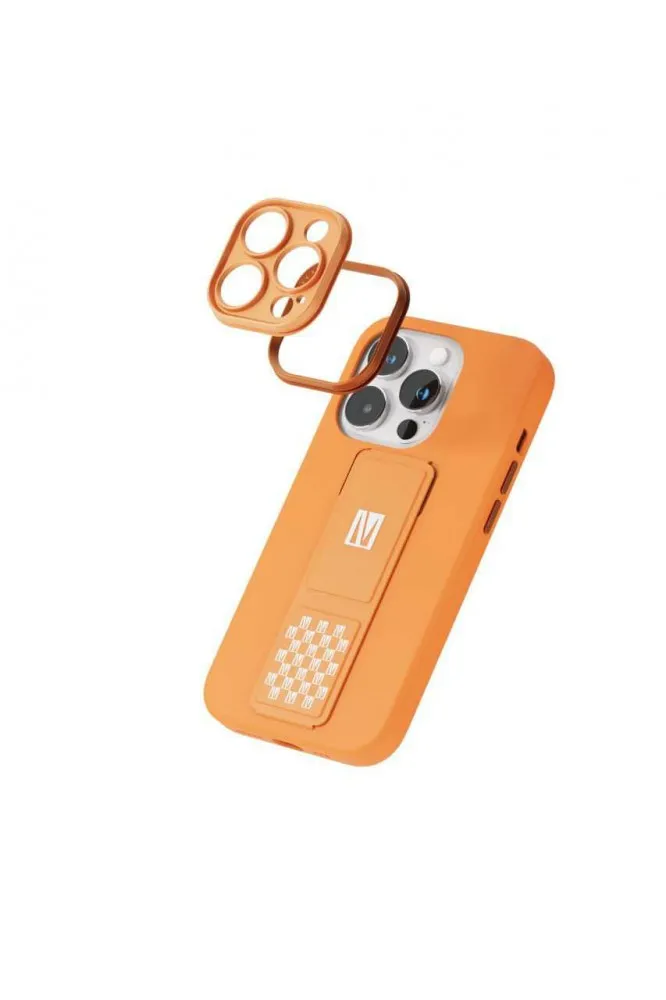 Levelo Morphix Silicone Case with Leather Grip Stand for iPhone 14 Pro – Orange