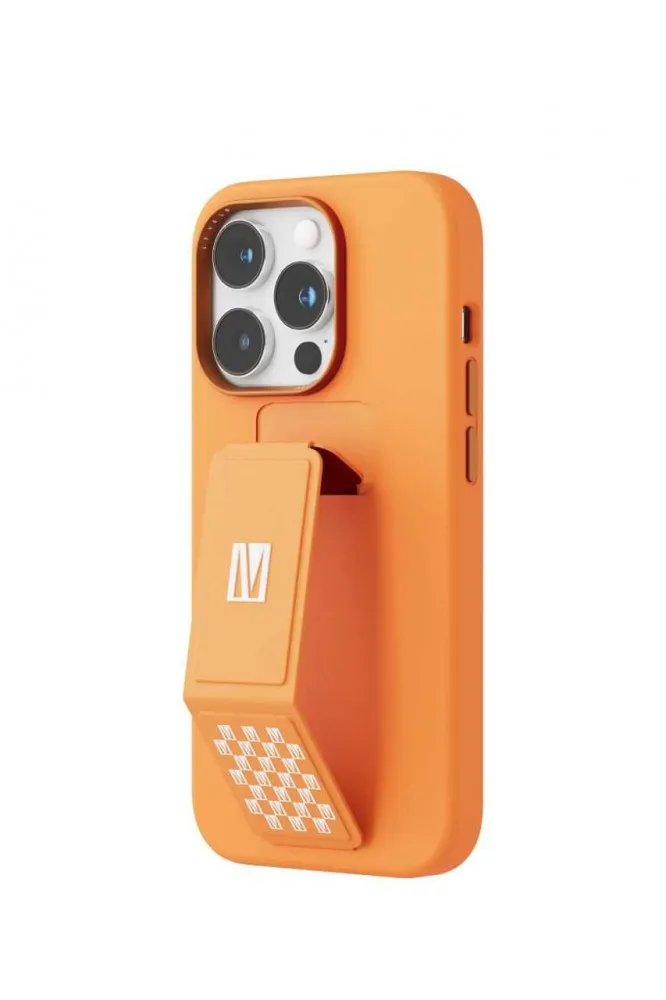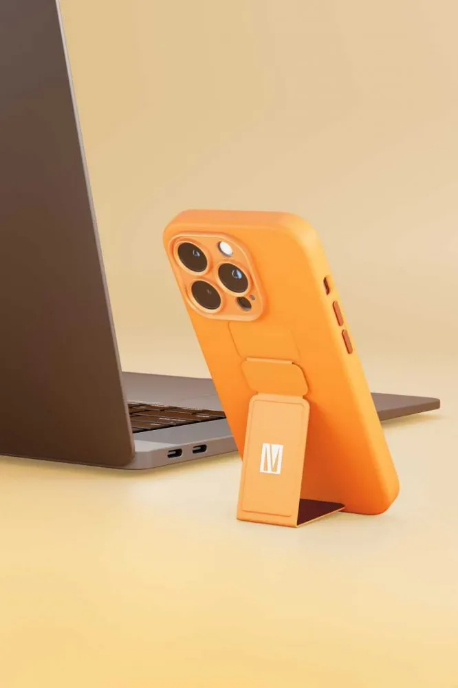 Levelo Morphix Silicone Case with Leather Grip Stand for iPhone 14 Pro Max – Orange