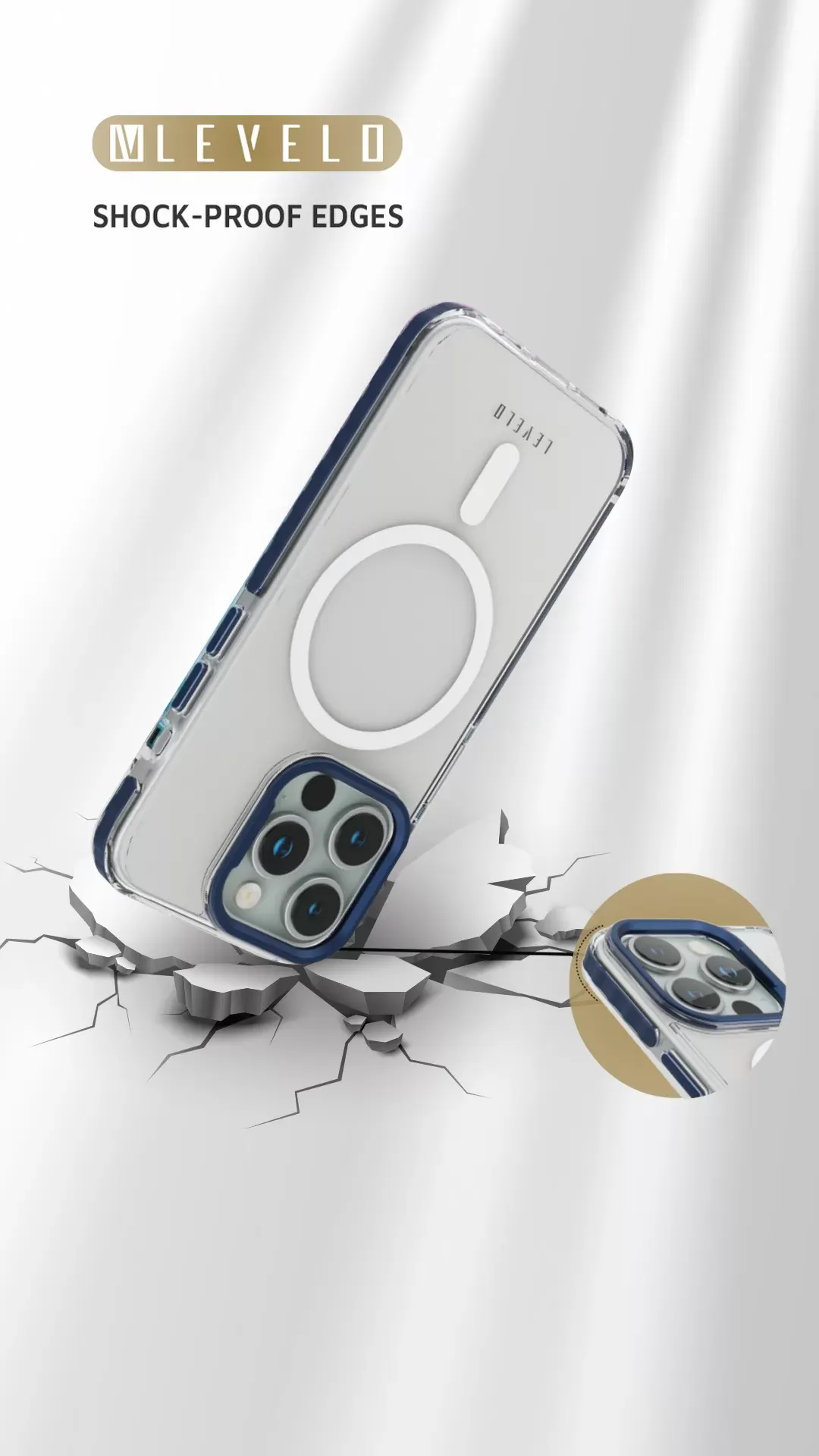 قاب شفاف FlexiGuard برای آیفون 15 پرو مکس – آبی – برند لِوِلو Levelo