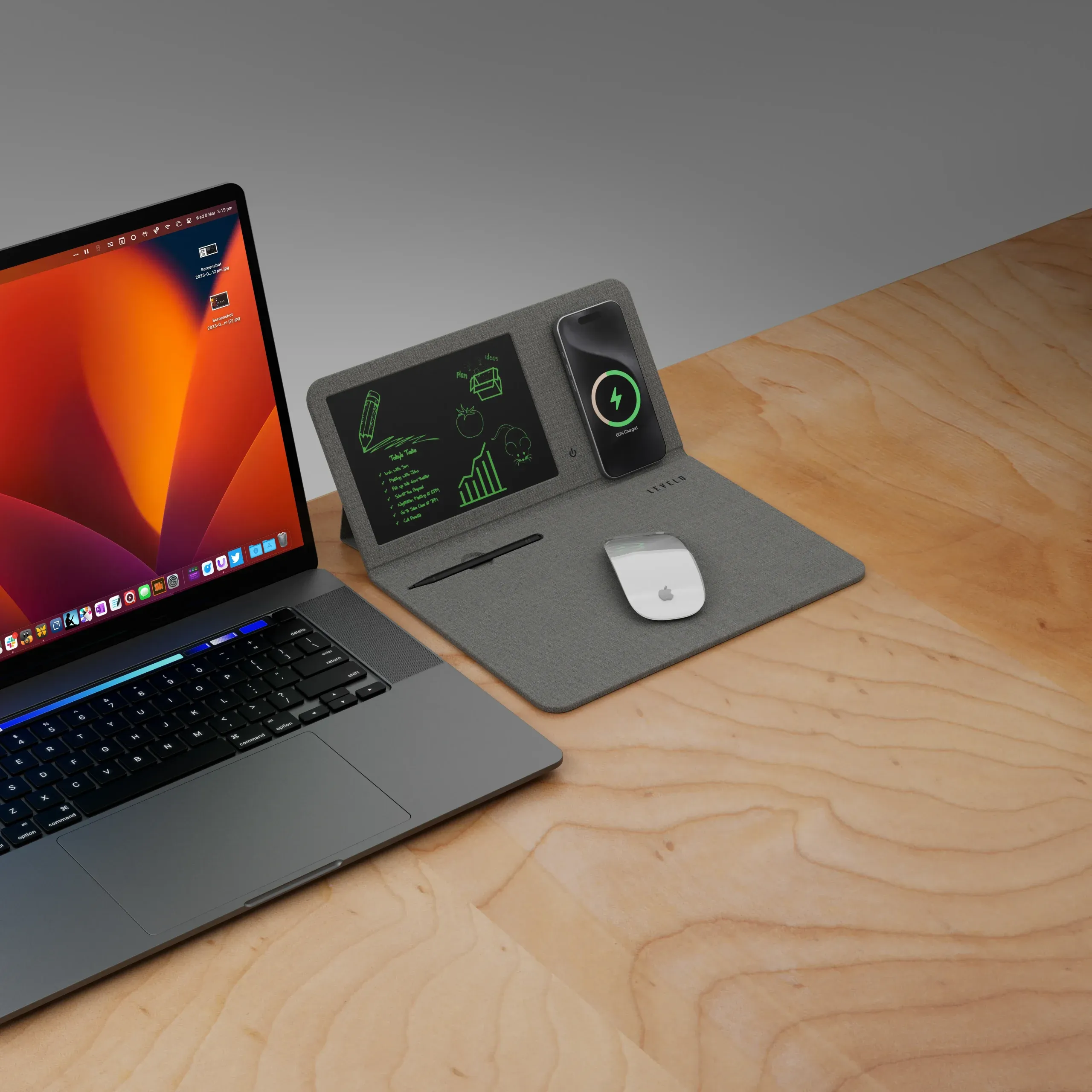 LEVELO POWERDECK MOUSE PAD WITH BUILT-IN BOARD & WIRELESS CHARGER – GREY