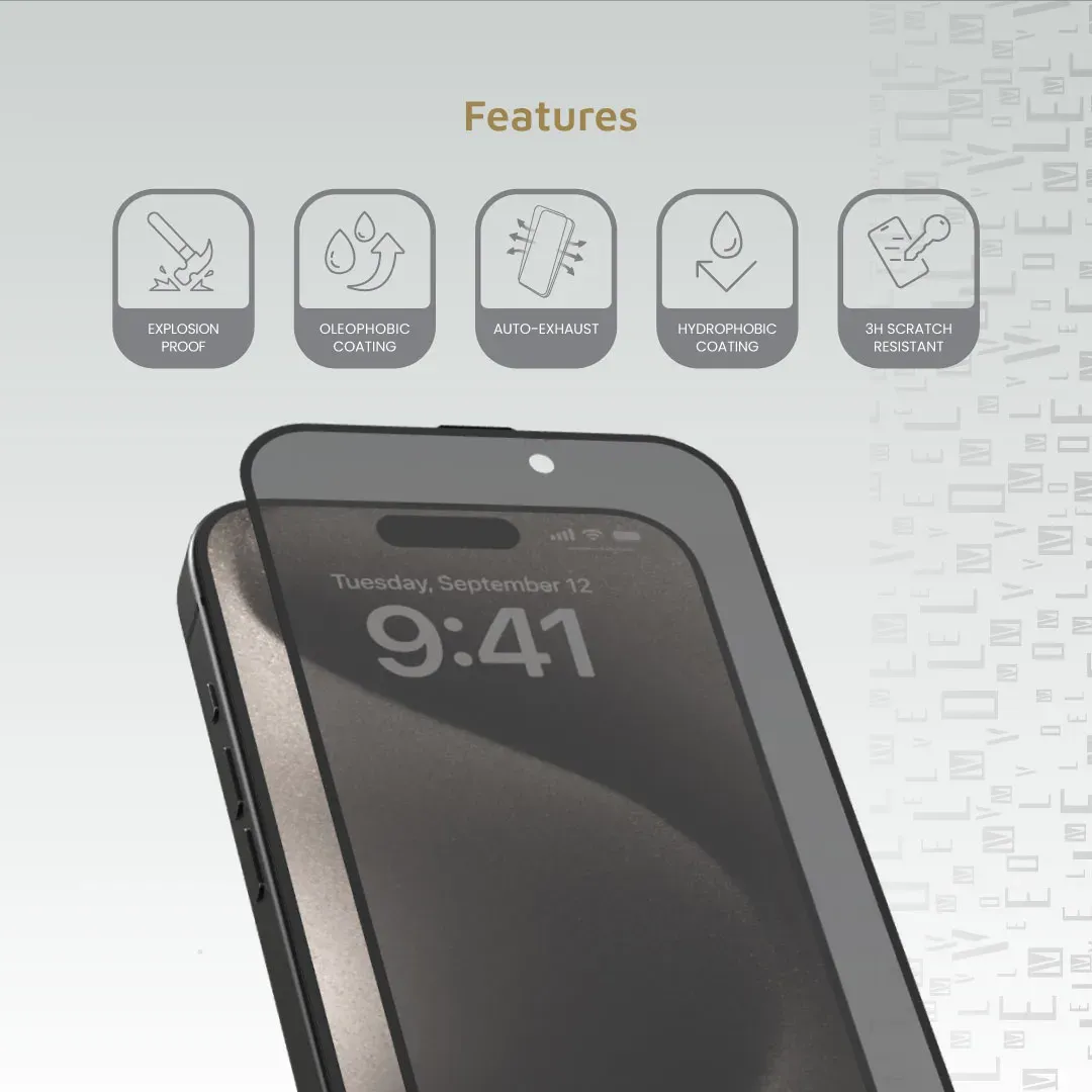 LEVELO 2.5D SILK PRINT SILICONE EDGE PRIVACY SCREEN PROTECTOR FOR IPHONE 16PRO
