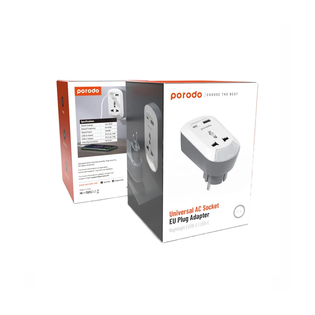 آداپتور پریز برق یونیورسال پورودو AC سوکت اتحادیه اروپا همراه کامل سفر است. با توان نامی 2500 وات و طیف گسترده ای از ولتاژهای ورودی، با دوشاخه های مختلف بین المللی سازگار است. خروجی‌های USB-A و USB-C هر کدام 12 وات را ارائه می‌کنند و اطمینان می‌دهند که دستگاه‌های شما بدون توجه به جایی که هستید، شارژ می‌شوند. جمع و جور و قابل اعتماد، این آداپتور برای مسافرانی که به یک منبع برق قابل اعتماد نیاز دارند ایده آل است.
