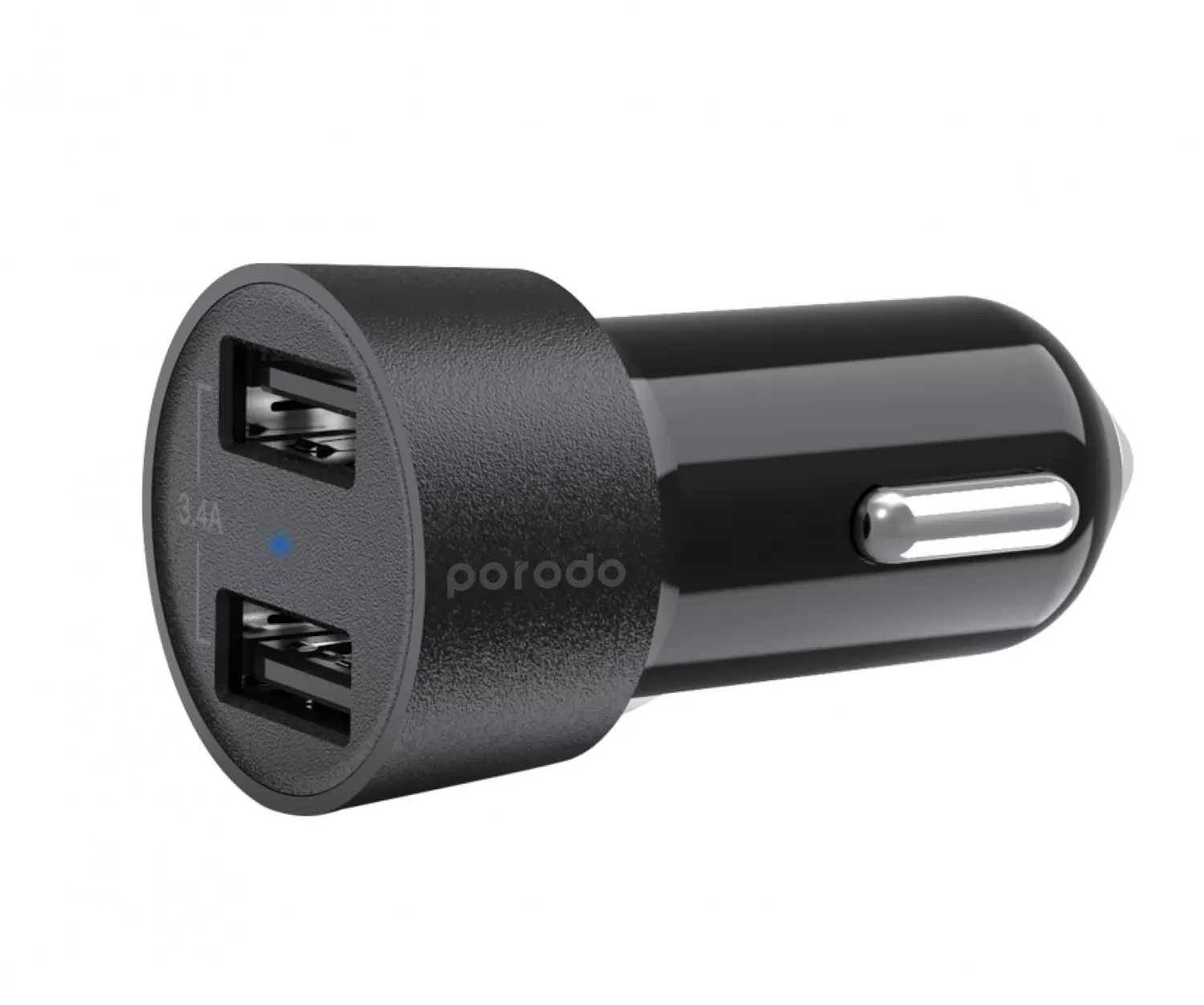 Porodo Dual USB Car Charger 3.4A with Lightning Cable 4ft.
