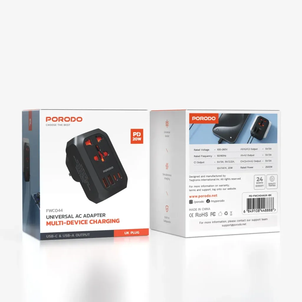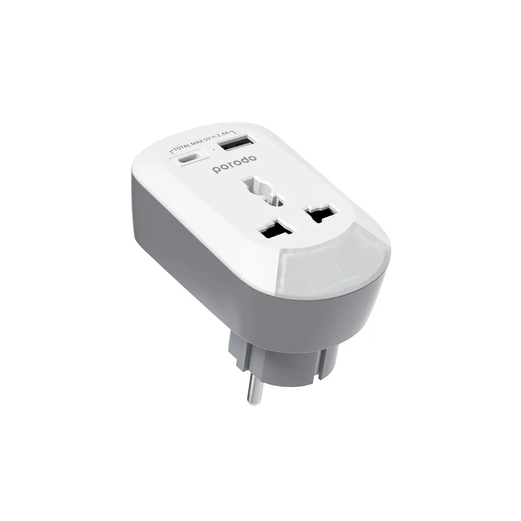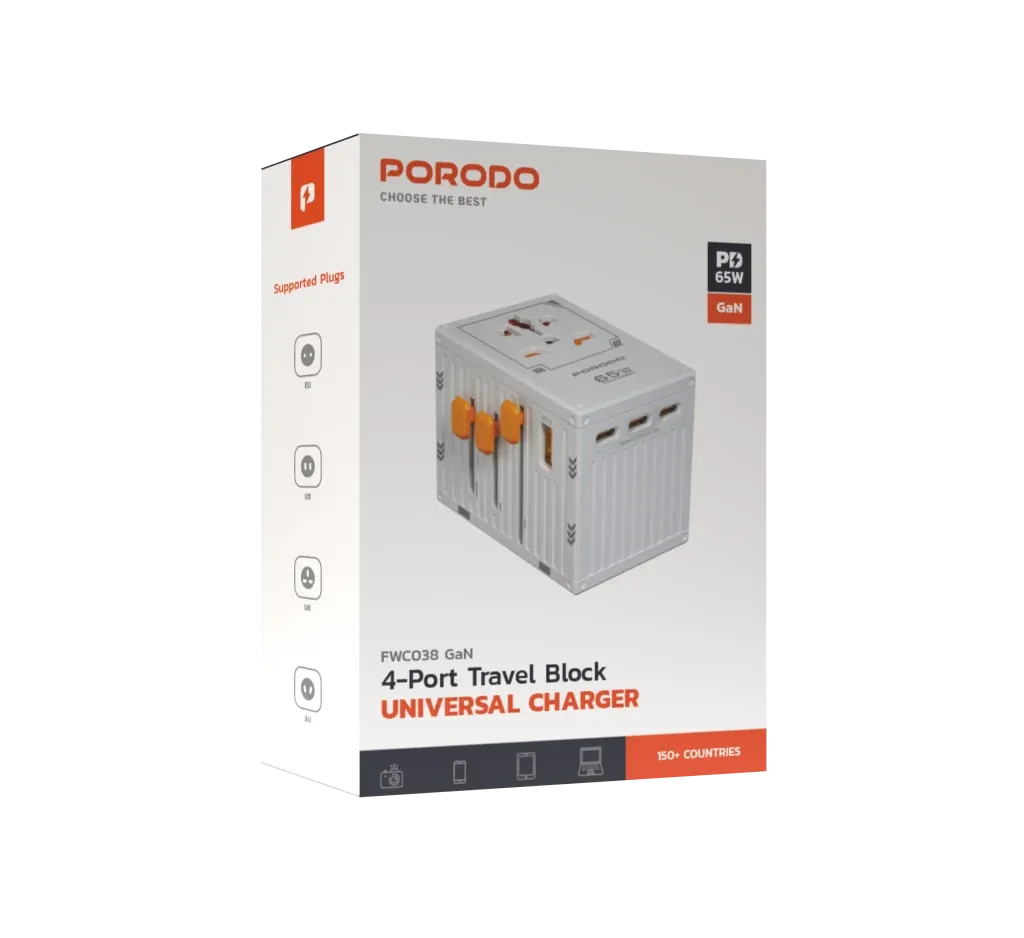 Porodo 3 USB + 1 Type-C Port Universal Travel Adapter 3.4A